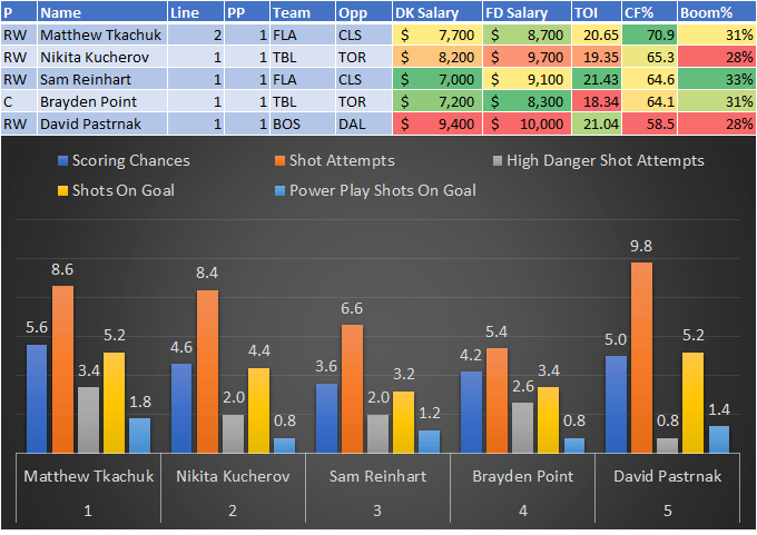 If you take anything away from this, remember that hockey is a high-variance sport. The top-ranked player in each category could be a great play or be a dud tonight. Going all-in on any player probably isn't a great move.