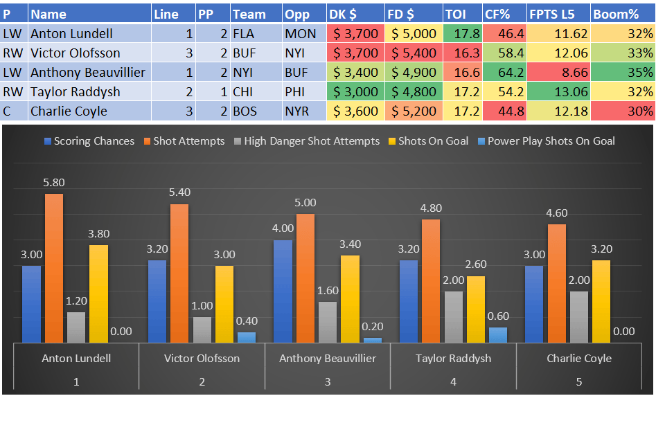 If you take anything away from this, remember that hockey is a high-variance sport. The top-ranked player in each category could be a great play or be a dud tonight. Going all-in on any player probably isn't a great move.