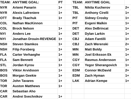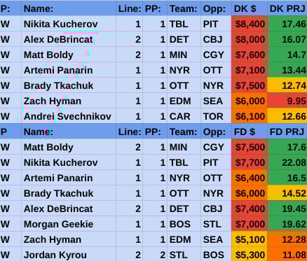 If you take anything away from this, remember that hockey is a high-variance sport. The top-ranked player in each category could be a great play or be a dud tonight. Going all-in on any player probably isn't a great move.