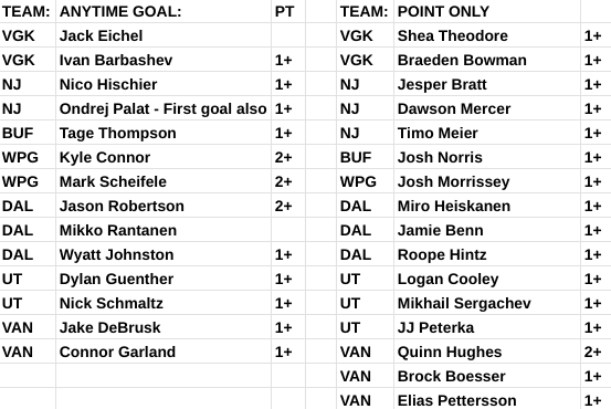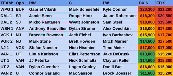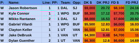 Favorite high-priced line: WPG 1 / DAL 1 & 2