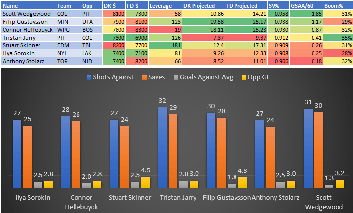 If you take anything away from this, remember that hockey is a high-variance sport. The top-ranked player in each category could be a great play or be a dud tonight. Going all-in on any player probably isn't a great move.
