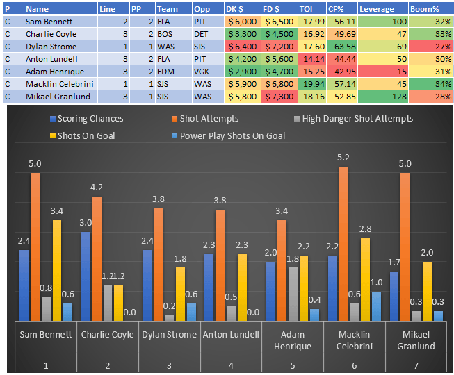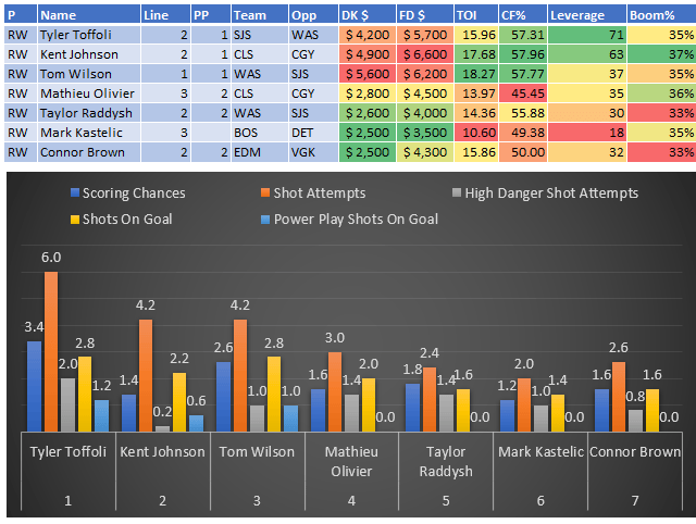 If you take anything away from this, remember that hockey is a high-variance sport. The top-ranked player in each category could be a great play or be a dud tonight. Going all-in on any player probably isn't a great move.