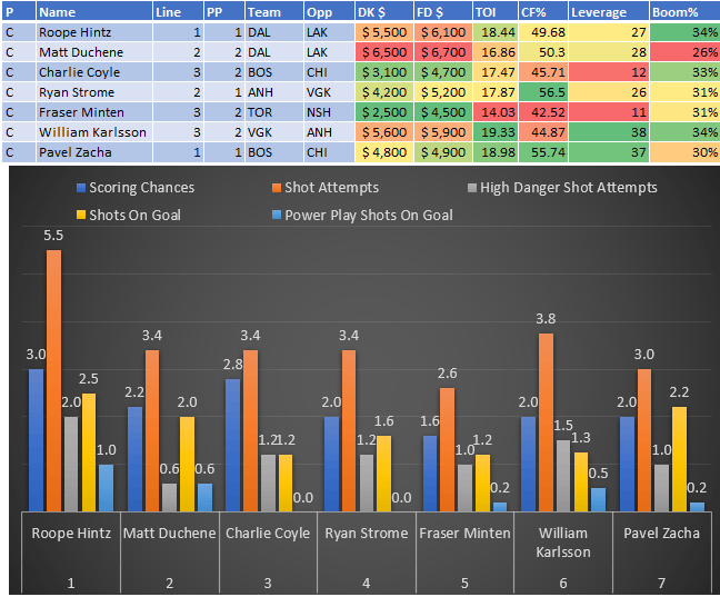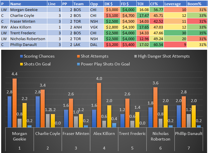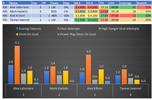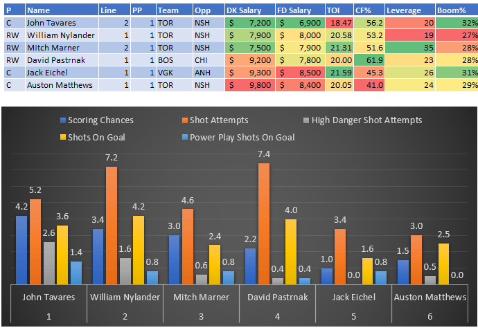 If you take anything away from this, remember that hockey is a high-variance sport. The top-ranked player in each category could be a great play or be a dud tonight. Going all-in on any player probably isn't a great move.