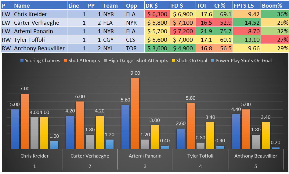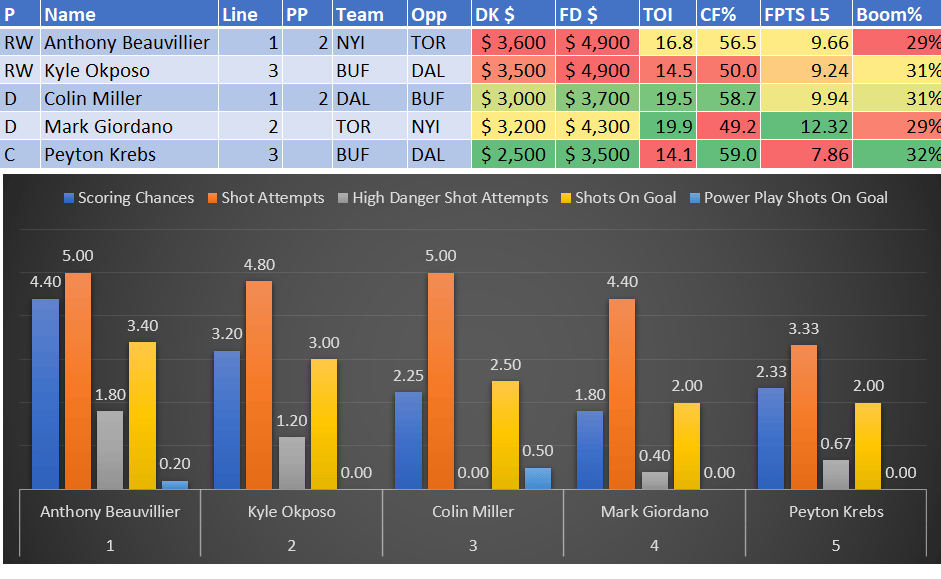 If you take anything away from this, remember that hockey is a high-variance sport. The top-ranked player in each category could be a great play or be a dud tonight. Going all-in on any player probably isn't a great move.