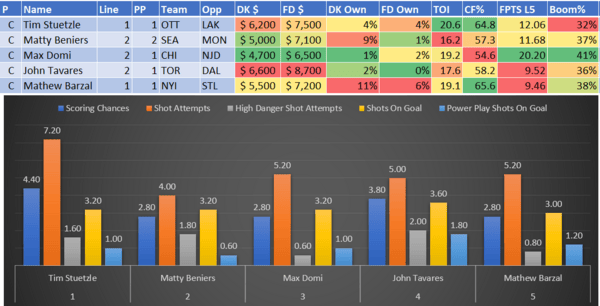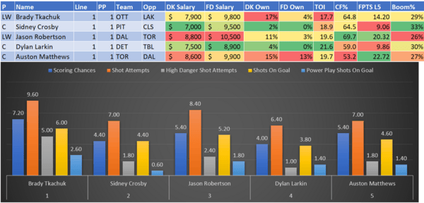 If you take anything away from this, remember that hockey is a high-variance sport. The top-ranked player in each category could be a great play or be a dud tonight. Going all-in on any player probably isn't a great move.