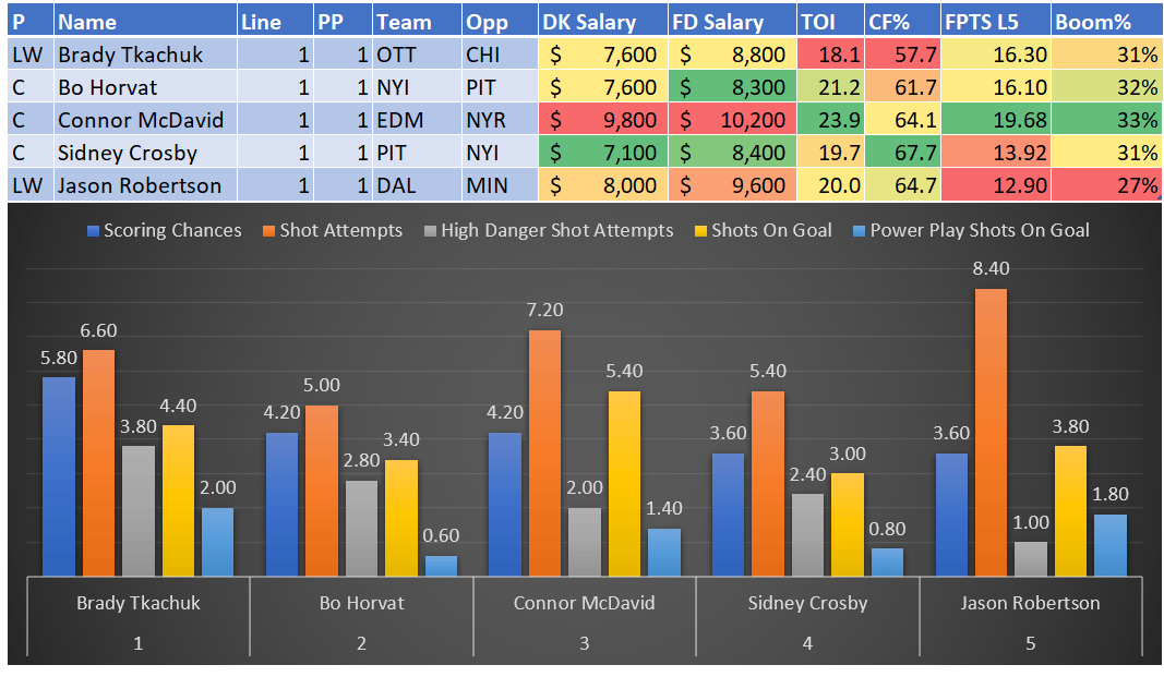 If you take anything away from this, remember that hockey is a high-variance sport. The top-ranked player in each category could be a great play or be a dud tonight. Going all-in on any player probably isn't a great move.