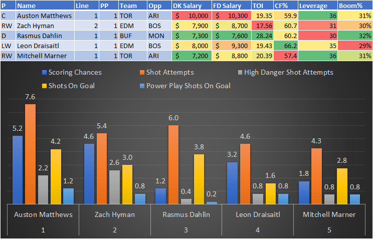 If you take anything away from this, remember that hockey is a high-variance sport. The top-ranked player in each category could be a great play or be a dud tonight. Going all-in on any player probably isn't a great move.