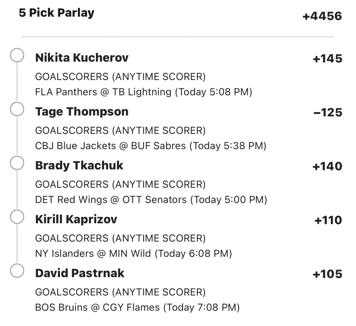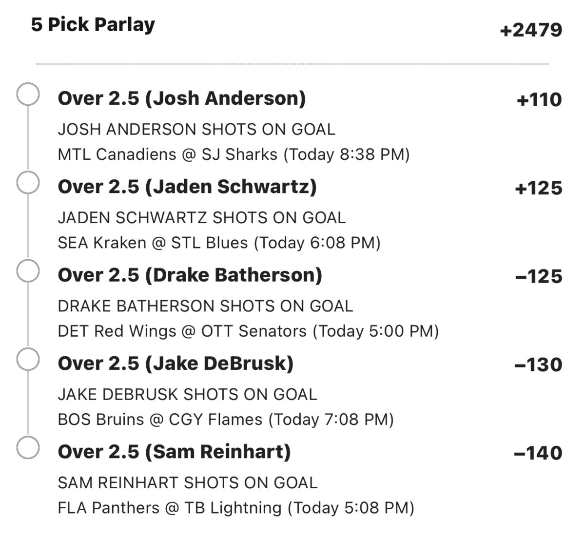 My picks for moneyline bets. Run singles or tail the full parlay: