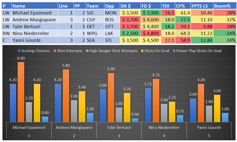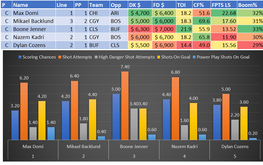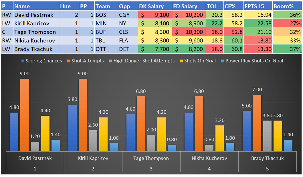 If you take anything away from this, remember that hockey is a high-variance sport. The top-ranked player in each category could be a great play or be a dud tonight. Going all-in on any player probably isn't a great move.
