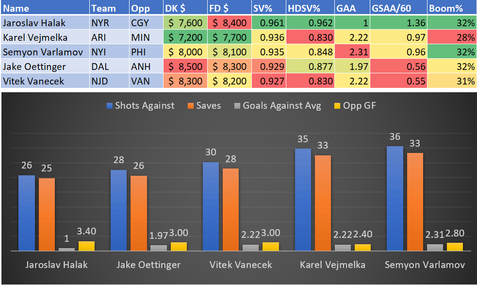 If you take anything away from this, remember that hockey is a high-variance sport. The top-ranked player in each category could be a great play or be a dud tonight. Going all-in on any player probably isn't a great move.