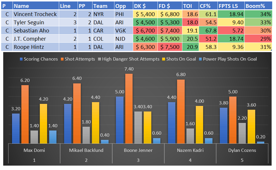 If you take anything away from this, remember that hockey is a high-variance sport. The top-ranked player in each category could be a great play or be a dud tonight. Going all-in on any player probably isn't a great move.