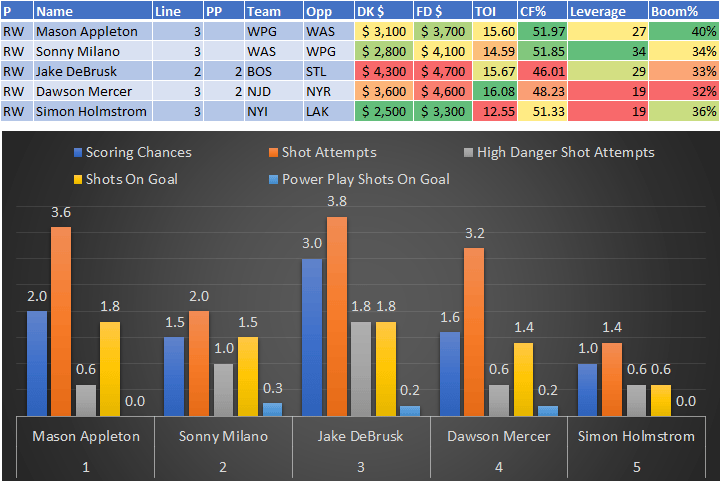 If you take anything away from this, remember that hockey is a high-variance sport. The top-ranked player in each category could be a great play or be a dud tonight. Going all-in on any player probably isn't a great move.