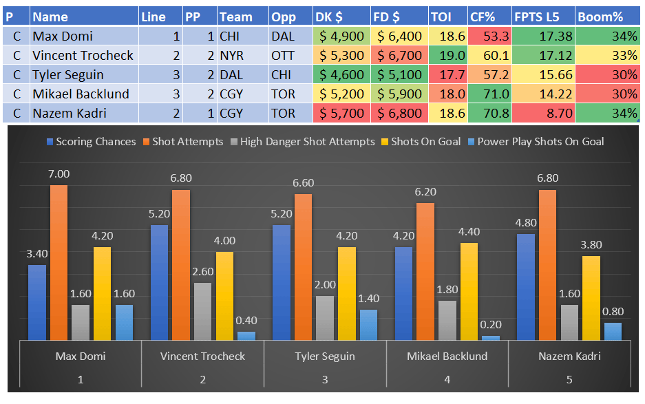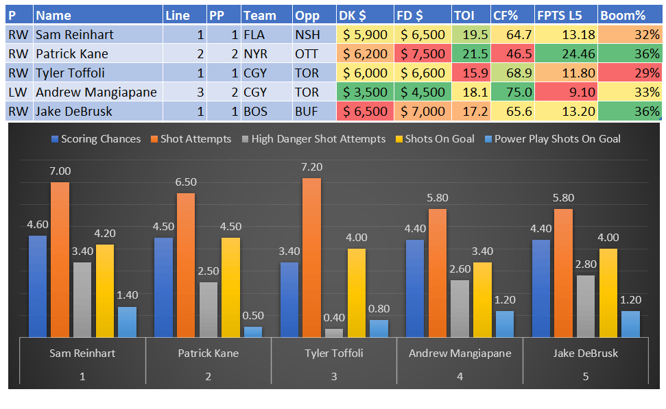 If you take anything away from this, remember that hockey is a high-variance sport. The top-ranked player in each category could be a great play or be a dud tonight. Going all-in on any player probably isn't a great move.