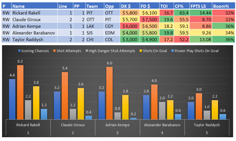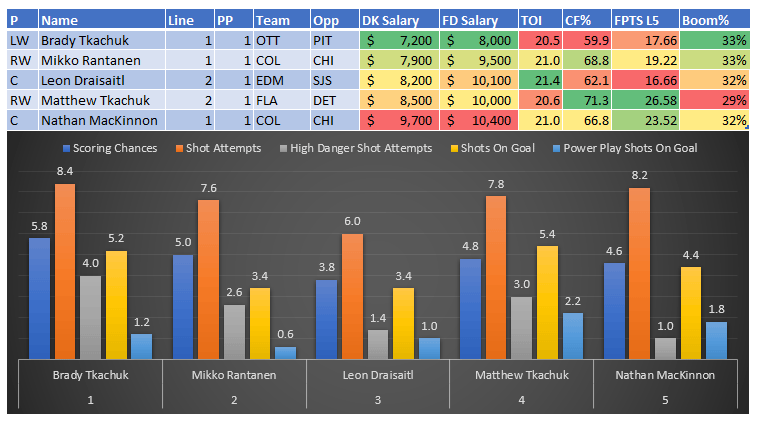 If you take anything away from this, remember that hockey is a high-variance sport. The top-ranked player in each category could be a great play or be a dud tonight. Going all-in on any player probably isn't a great move.