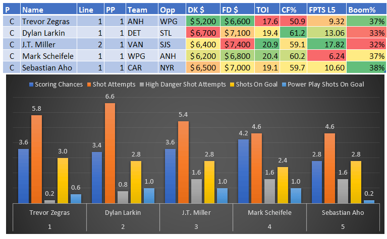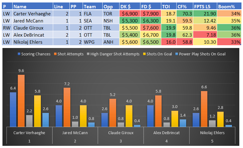 If you take anything away from this, remember that hockey is a high-variance sport. The top-ranked player in each category could be a great play or be a dud tonight. Going all-in on any player probably isn't a great move.