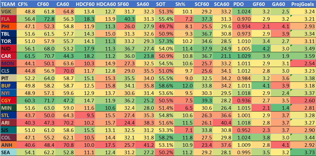 Here are the team numbers for tonight's slate (looking at the last 10 games):