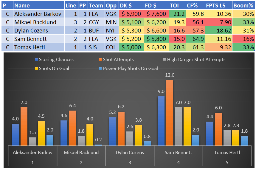 If you take anything away from this, remember that hockey is a high-variance sport. The top-ranked player in each category could be a great play or be a dud tonight. Going all-in on any player probably isn't a great move.