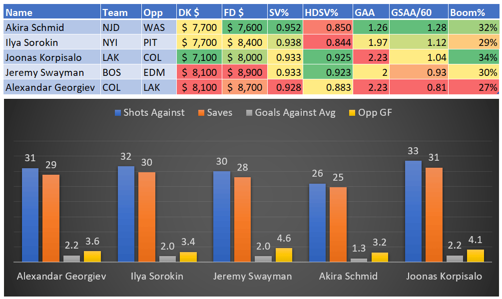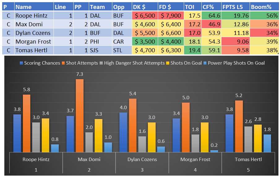If you take anything away from this, remember that hockey is a high-variance sport. The top-ranked player in each category could be a great play or be a dud tonight. Going all-in on any player probably isn't a great move.