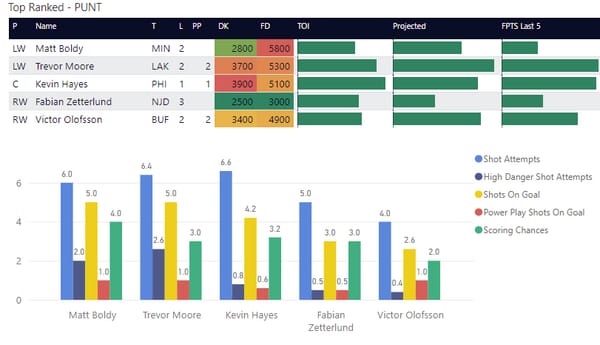 If you take anything away from this, keep in mind that hockey is a high-variance sport. The top-ranked player in each category could be a great play or be a dud tonight. Going all-in on any player probably isn't a great move.