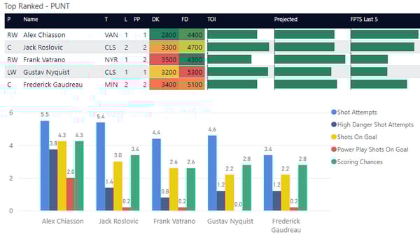 If you take anything away from this, keep in mind that hockey is a high-variance sport. The top-ranked player in each category could be a great play or be a dud tonight. Going all-in on any player probably isn't a great move.