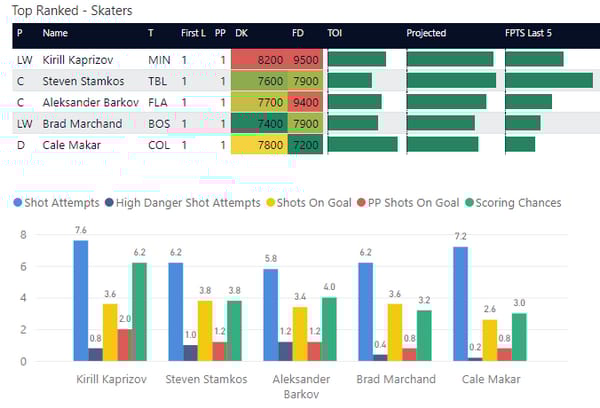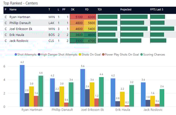 If you take anything away from this, keep in mind that hockey is a high-variance sport. The top-ranked player in each category could be a great play or be a dud tonight. Going all-in on any player probably isn't a great move.