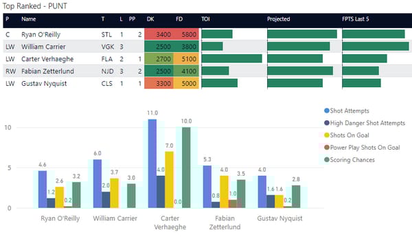 If you take anything away from this, keep in mind that hockey is a high-variance sport. The top-ranked player in each category could be a great play or be a dud tonight. Going all-in on any player probably isn't a great move.
