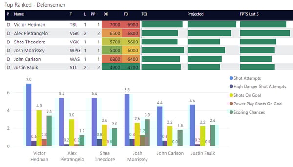 If you take anything away from this, keep in mind that hockey is a high-variance sport. The top-ranked player in each category could be a great play or be a dud tonight. Going all-in on any player probably isn't a great move.