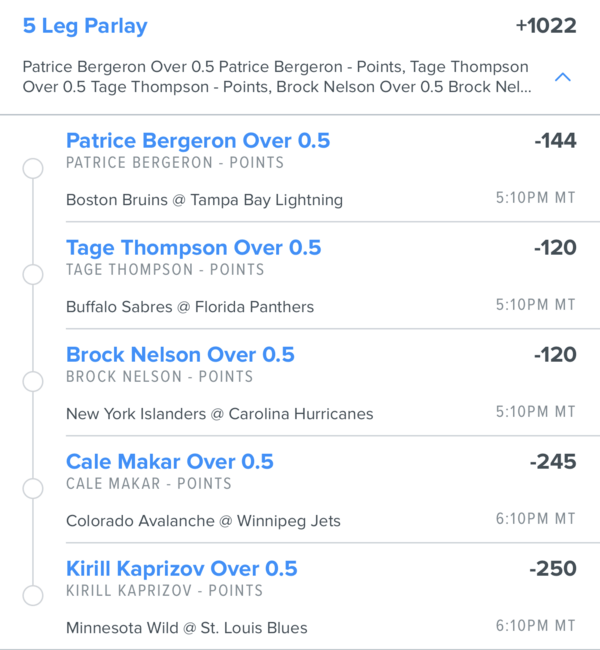 I've got a 5-leg lotto parlay for tonight. Feel free to play singles, round robins, or take a few and make your own parlay.