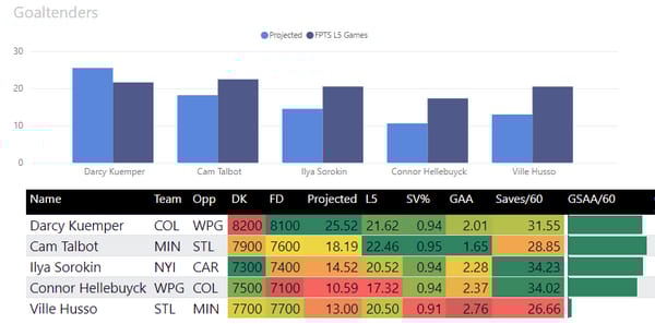 My preference is to correlate goalie with one of my stacks, but my favorite tonight is: