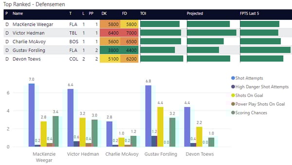 If you take anything away from this, keep in mind that hockey is a high-variance sport. The top-ranked player in each category could be a great play or be a dud tonight. Going all-in on any player probably isn't a great move.