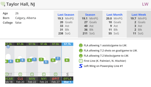 Tyler Pitlick - DAL - $3000 DK/$3200 FD