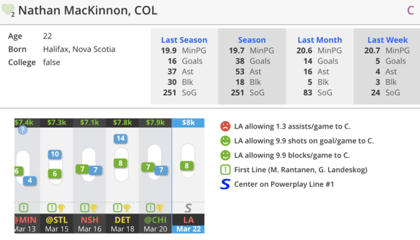 Nathan MacKinnon - COL - $8000 DK/$9000 FD