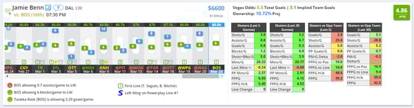 Jamie Benn - DAL - $6600 DK/$7900 FD