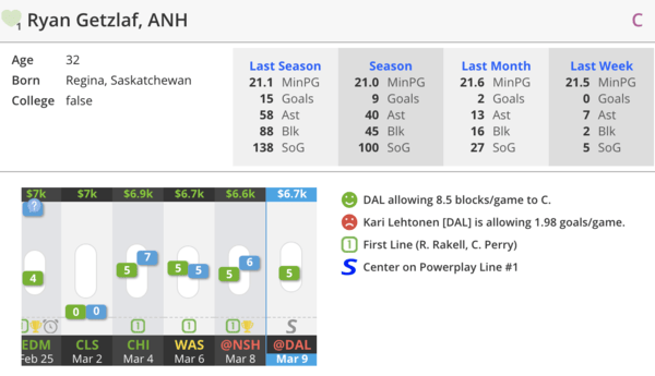 Ryan Miller - ANH - $7200 DK/$8100 FD – GPP Preferred